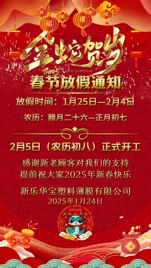 祥蛇賀歲,福滿人間。值此蛇年新春佳節(jié)來臨之際,