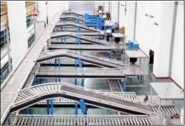 自動化、智能化的輸送分揀系統(tǒng)貫穿出入庫、上架、補(bǔ)貨、復(fù)核、分揀全部倉儲流程,輸送效率1200件/時,分揀效率1800件/時。