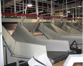 3,配送中心工作人員統(tǒng)一將貨物打包,放進(jìn)運(yùn)輸?shù)募b箱(一個(gè)統(tǒng)一包裝容器)里,然后再放置地下輸送線上。